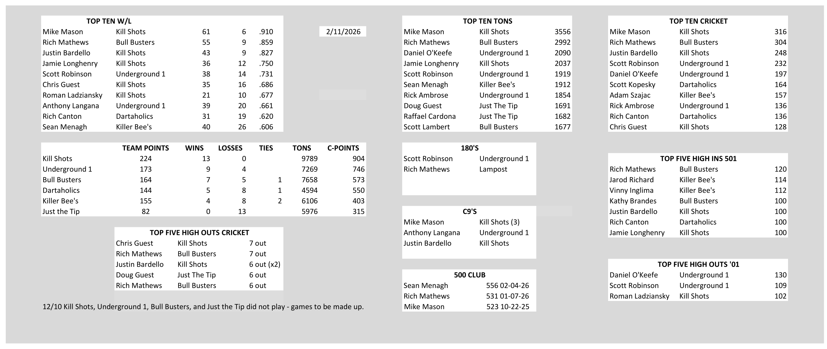 WEEKLY SCORE SHEETS (Please check for accuracy)